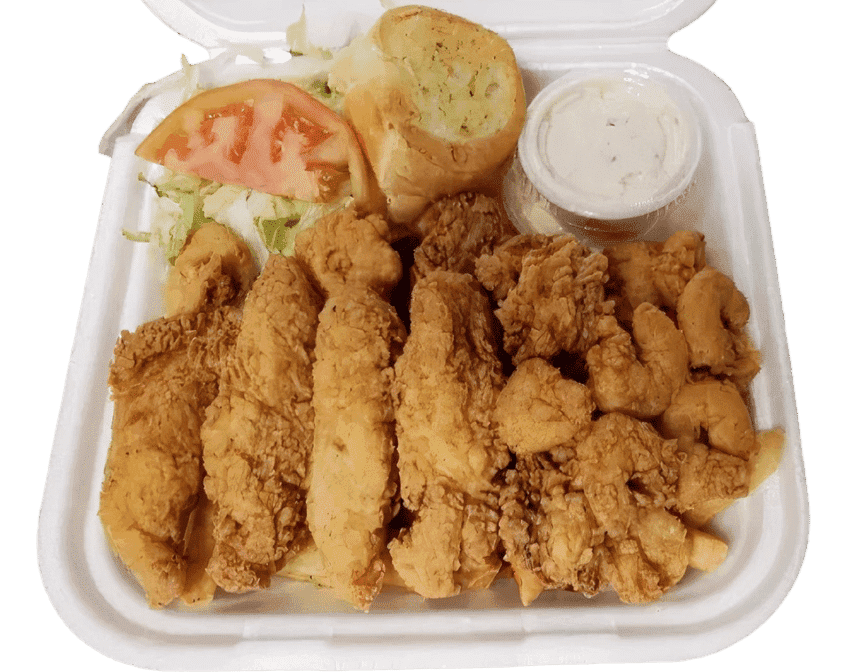 Shrimp, and fish.